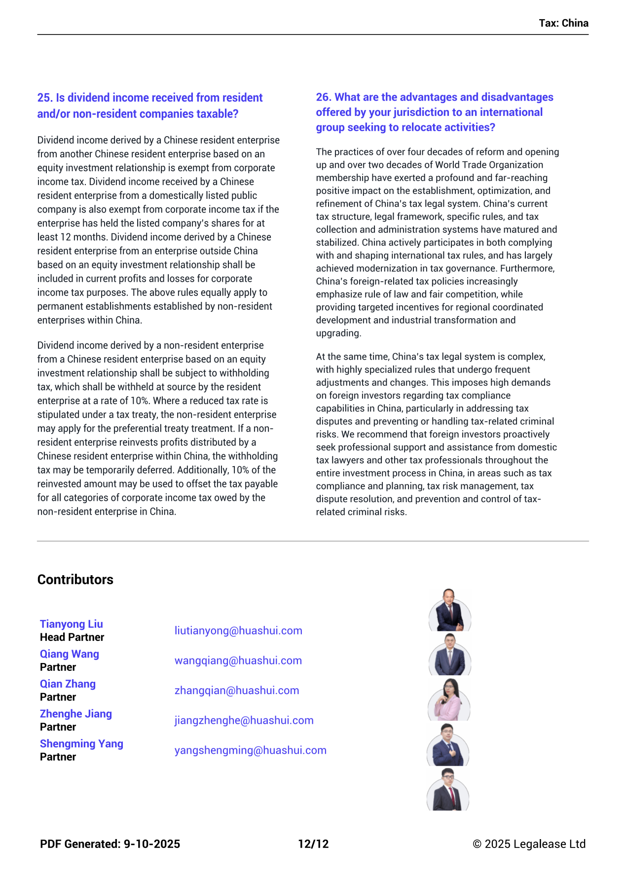 Recently, the "2025 Tax Comparative Guide China", authored by Hwuason Law Firm’s legal team upon the invitation of Legal500, has been officially released on Legal500’s official website. The "2025 Tax Comparative Guide" was collaboratively compiled by Legal500 and leading tax law experts worldwide. Presented in a Q&A format, the guide covers key tax law rules and practical guidance, including updates in tax legislation, tax collection and management systems, tax residency, withholding taxes, anti-avoidance measures, and the implementation of the BEPS Action Plan and the Two-Pillar Solution. It offers corporate legal professionals an overview of tax practices in major jurisdictions such as China, the UK, France, the U.S., Germany, and Japan. As China’s first specialized tax law firm, Hwuason Law Firm has successfully represented over 1,000 complex tax dispute cases across the country over the years. By maximizing corporate value and earning high recognition from relevant authorities, Hwuason has established a unique reputation in the industry.