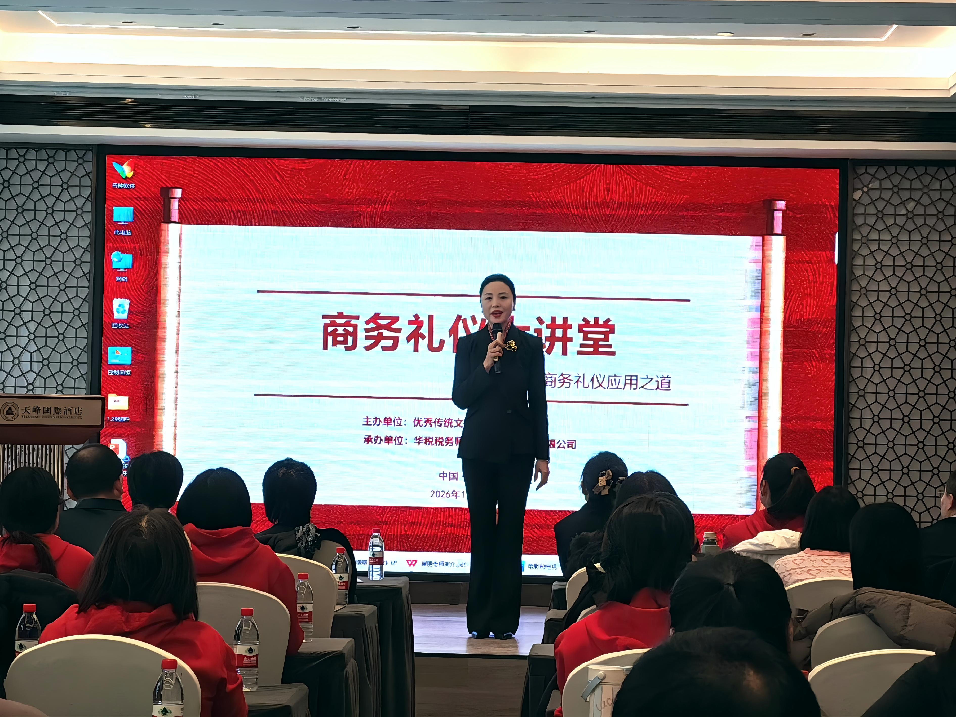 To practice the company's cultural philosophy and illuminate the path of business with the light of Chinese etiquette, the "Business Etiquette Lecture Hall", hosted by the Yulin Council of Excellent Traditional Culture and organized by Huashui (Shaanxi), was successfully held at 3:00 p.m. on January 29 in the conference hall of the Yulin Tianfeng Hotel. The event featured Ms. Cui Li, a renowned domestic etiquette expert, as the keynote speaker. Leveraging her rich experience in business etiquette training and profound cultural knowledge, Ms. Cui delivered an engaging and vivid presentation to the guests on aspects such as dress code, speech and demeanor, and communication skills in business settings. This activity demonstrated Huashui (Shaanxi)'s emphasis on enhancing employees' comprehensive quality and its active commitment to inheriting and promoting China's excellent traditional culture.