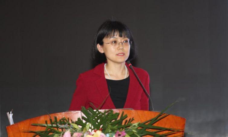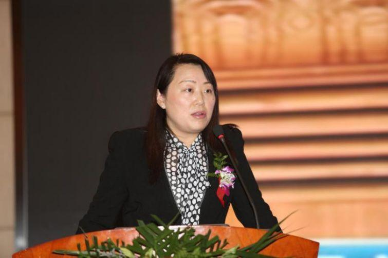 The picture shows the speech of Ms. Zhang Bo
