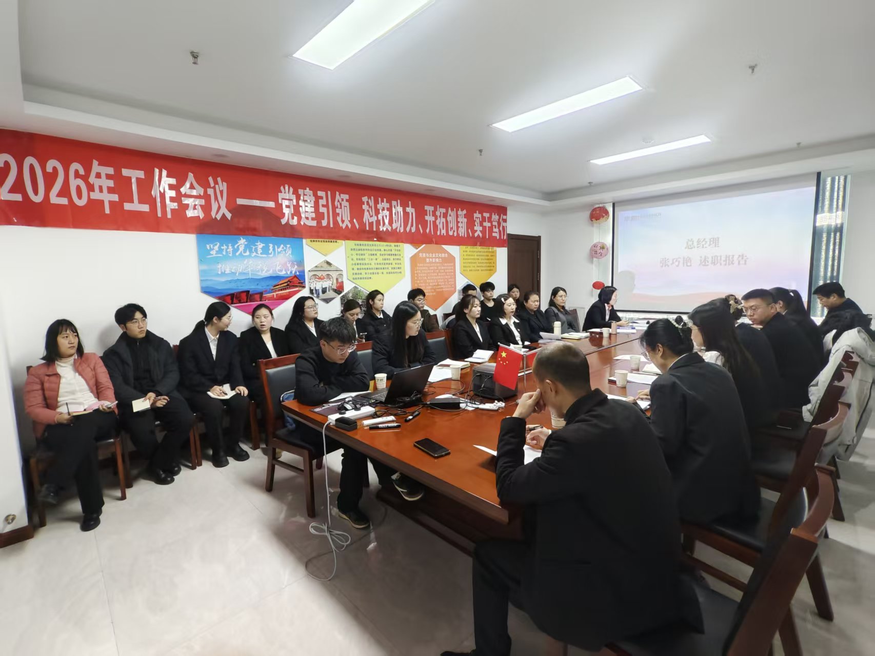 In the afternoon of the same day, the 2026 Work Conference, under the theme "Party Building Leads, Technology Empowers, Pioneers and Innovates, and Works Diligently and Practically", was held on schedule in the conference room of the Yulin Branch. The meeting was presided over by Ai Fang, the person in charge of the Yulin Branch.