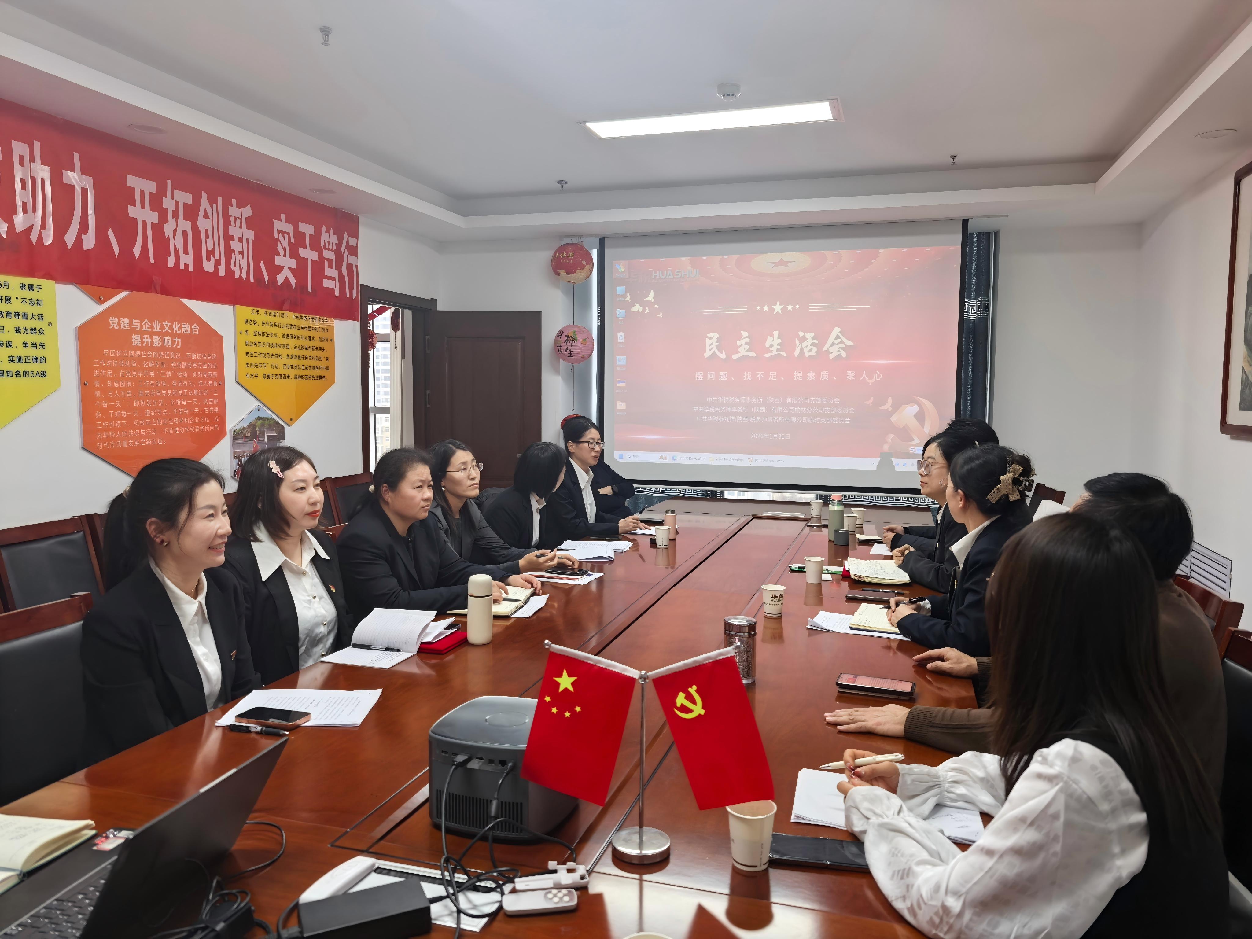 On January 29-30, 2026, Huashui Tax Agent Firm (Shaanxi) Co., Ltd. (hereinafter referred to as "Huashui (Shaanxi)") successfully convened its 2026 Work Conference in Yulin City. The conference served not only as a comprehensive review of the previous year's work but also as a platform to set the direction and consolidate strength for the new year's development. Guided by the principles of "Party Building Leads, Technology Empowers, Pioneers and Innovates, and Works Diligently and Practically", it marked the official commencement of Huashui (Shaanxi)'s new journey toward high-quality development.