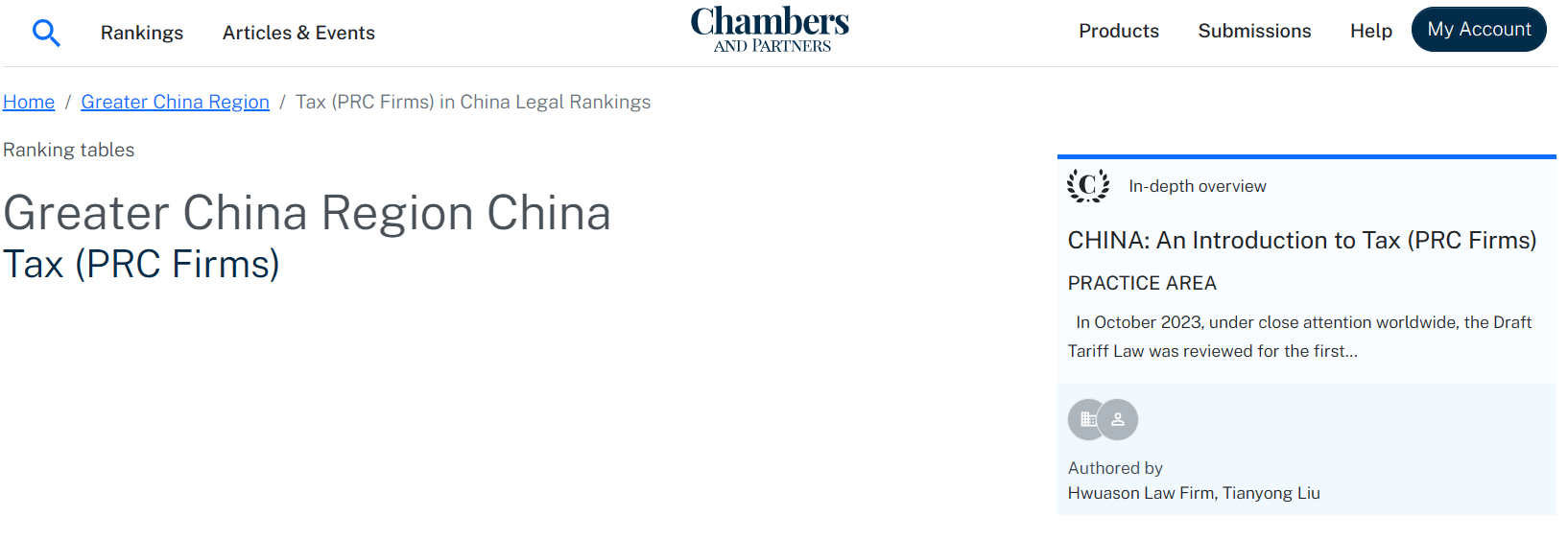 Hwuason lawyer Liu Tianyong was accepted Chambers' exclusive invitation to write the article "Greater China Region Guide 2024 - China's Tax Law Reforms 2024"