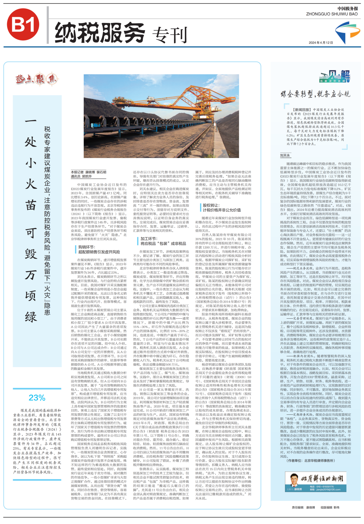 --Tax experts advise coal enterprises to pay attention to the prevention and control of tax risks to avoid leaving "fire" hidden danger.