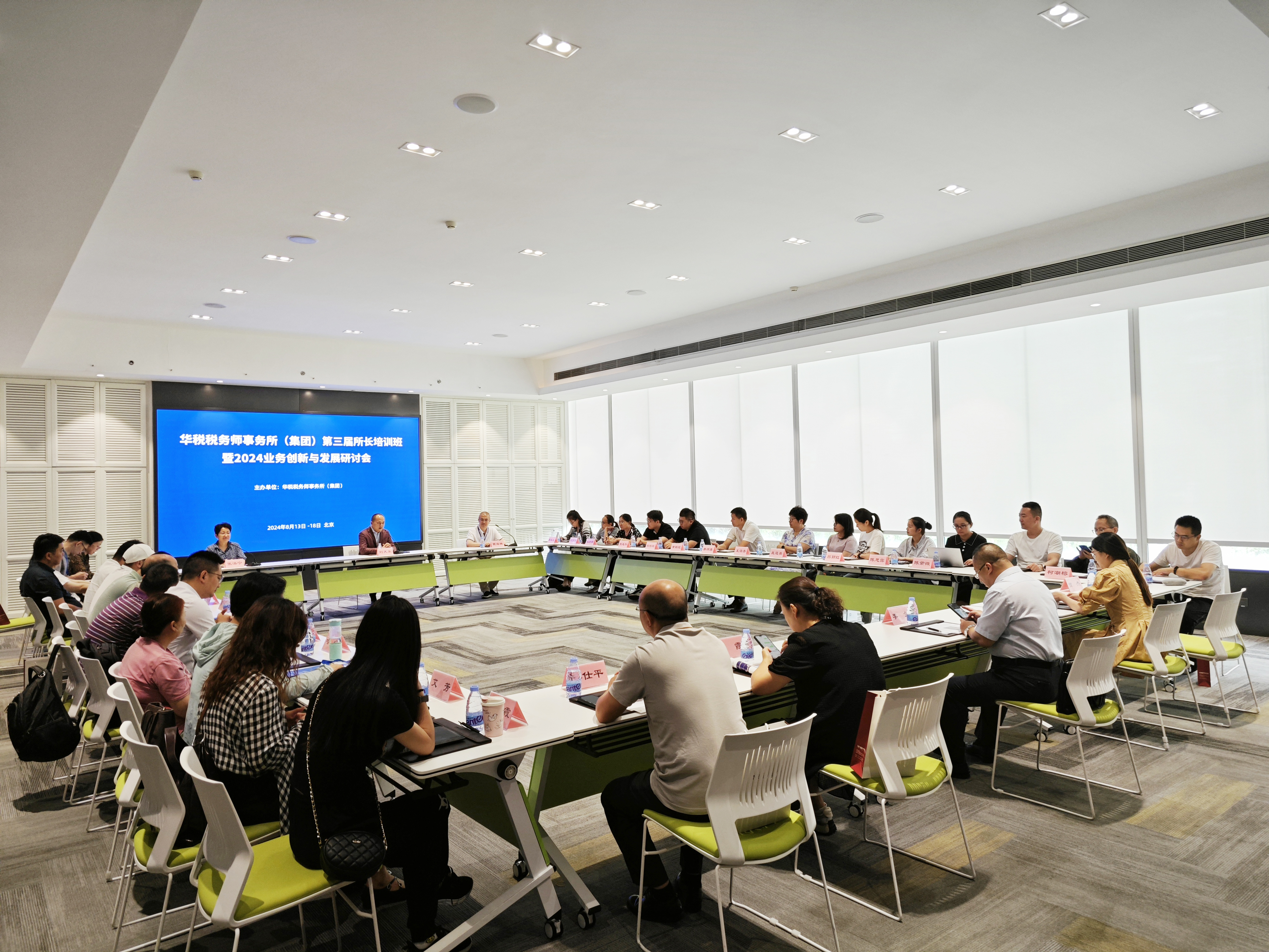 From August 13 to August 18, the “Third Director Training Session and 2024 Business Innovation and Development Seminar of Huashui Tax Agents Firm (Group)” was successfully held at the Beijing Chunhuiyuan International Conference Center. Over 30 directors from various branches of the Huashui Group gathered together to discuss the group’s development strategy and direction, with the aim of accelerating resource sharing among member firms and achieving the group's goal of “integration.”