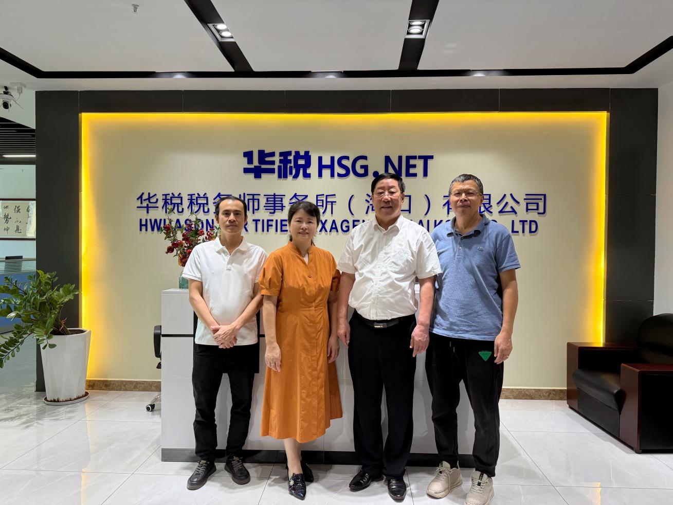 On August 8, 2024, Mr. Xiong Lin, President of the Hainan Provincial Enterprisers ’Association for pri-vate Enterprises, and Mr. Chen Liang, Deputy Secretary-General, paid a visit to HuaShui Tax Agent Co., Ltd. (Haikou) (hereinafter referred to as HuaShui Haikou Company) for an exchange of views.