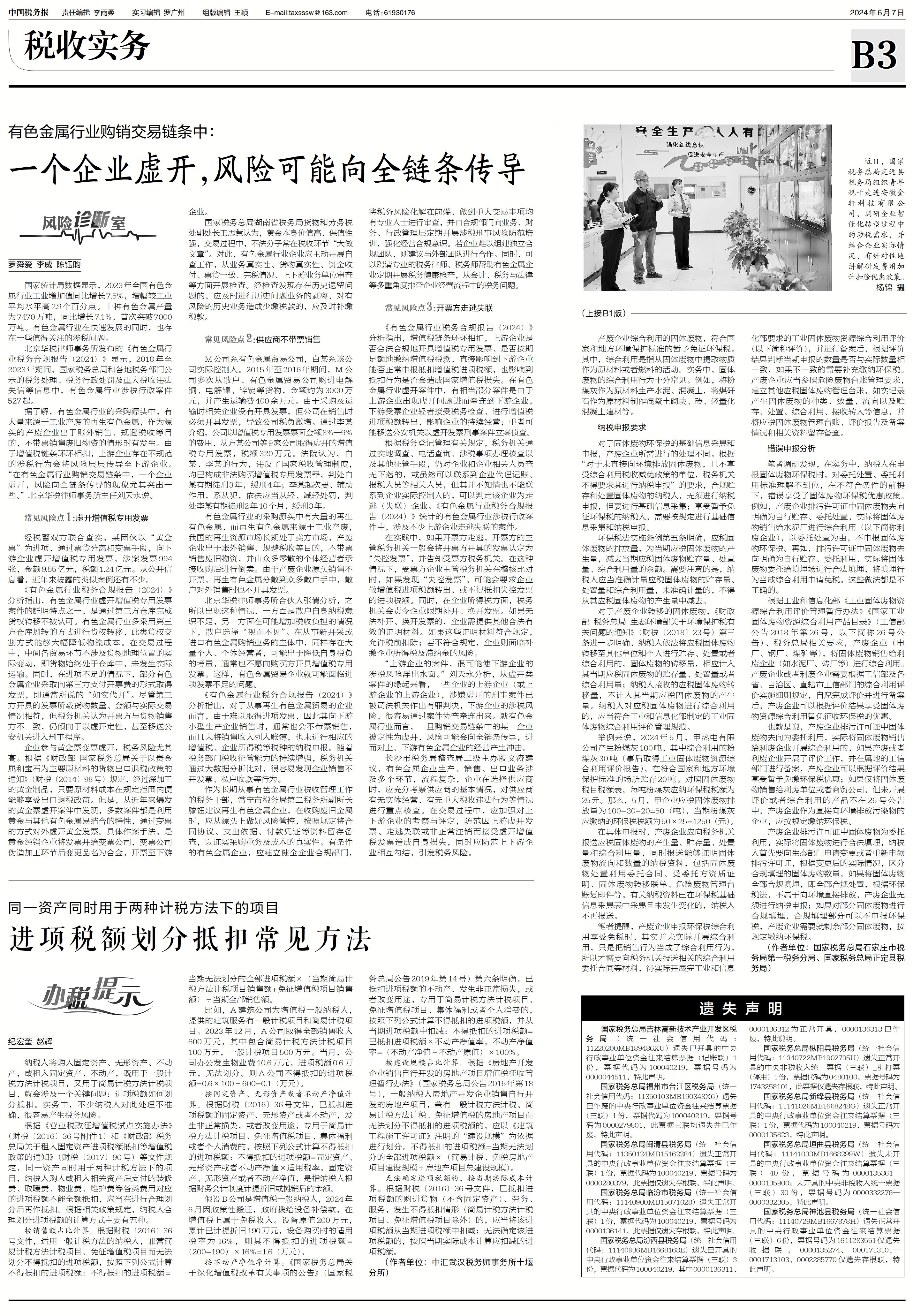 Non-ferrous metals are important basic raw materials for electronics, aviation, automobiles, construction and other fields, and play an important role in economic construction, national defense construction and social development. In the field of taxation, in recent years, the non-ferrous metal industry tax-related cases occur frequently, non-ferrous metal purchase and sale, transportation and other aspects of the tax risk is more and more prominent. In March this year, the Supreme People's Court and the Supreme People's Procuratorate also mentioned at the press conference on judicial interpretation and typical cases of tax-related crimes that the precious metal industry is a high incidence area of fraudulent tax crimes. Under the supervisory situation of eight departments of the country jointly combating tax-related crimes, the tax compliance management of non-ferrous metal enterprises should not be delayed. Recently, Hwuason Law Firm Liu Tianyong and Zhang Qian were interviewed by China Taxation News on the common tax-related risks and compliance management of non-ferrous metal industry, and analyzed the "false VAT invoices", "supplier sales without invoices" and "invoiced sales" in the non-ferrous metal industry. It analyzes the causes of three common tax-related risks in the non-ferrous metal industry, namely, "false VAT invoicing", "sales by suppliers without invoices" and "invoicing party escaping and losing contact", and puts forward suggestions for prevention and response. The full text is as follows: