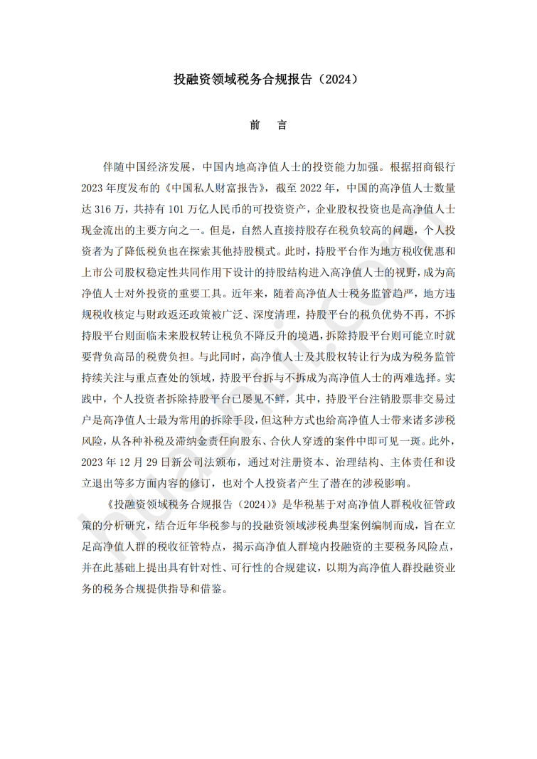Click to download:《Tax Compliance Report in Investment and Financing》(2024)