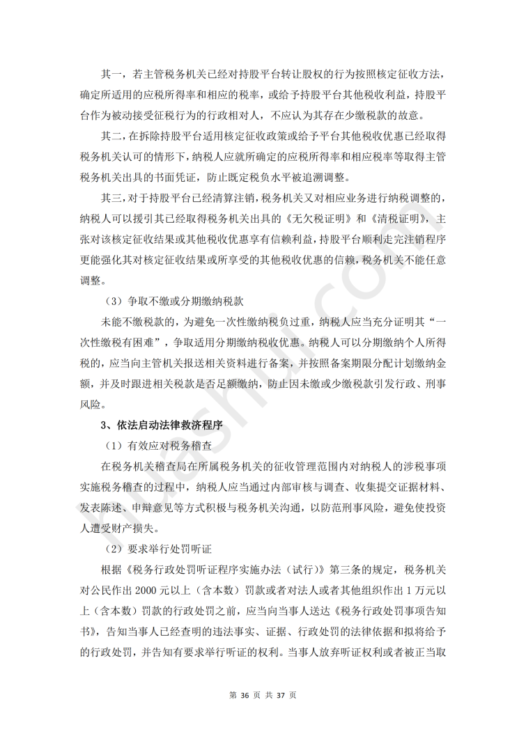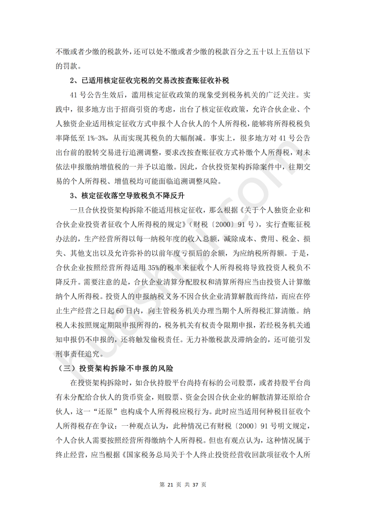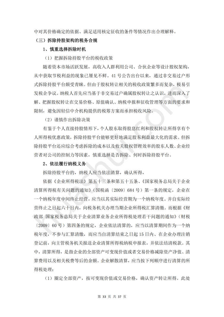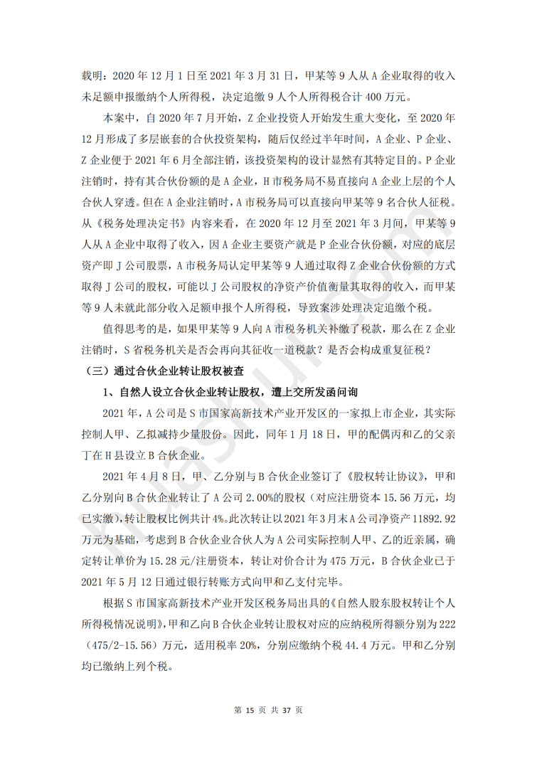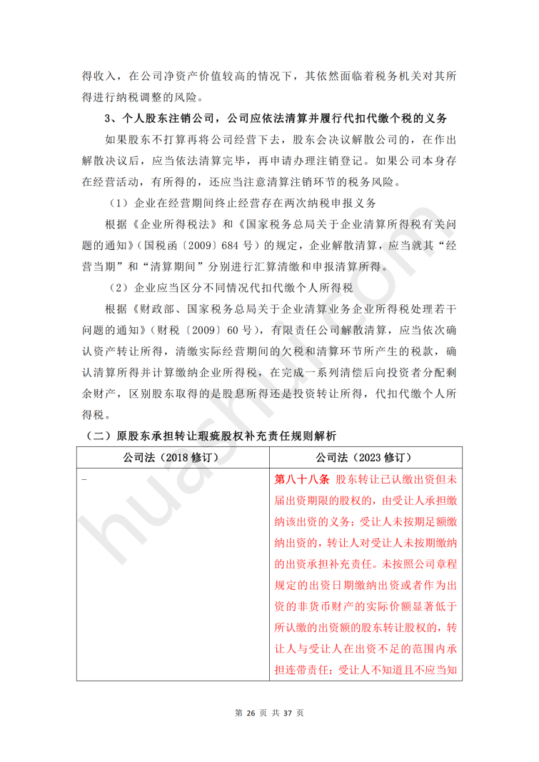 Along with China's economic development, the investment capacity of high net worth individuals (HNWIs) in Mainland China has strengthened. According to the China Private Wealth Report released by China Merchants Bank in 2023, as of 2022, the number of HNWIs in China reached 3.16 million, holding a total of RMB 101 trillion in investable assets, and corporate equity investment is also one of the main directions of HNWIs' cash outflow. However, direct shareholding by natural persons has a high tax burden, and individual investors are exploring other shareholding modes in order to reduce their tax burden. At this time, the shareholding platform, as a shareholding structure designed under the combined effect of local tax incentives and the stability of listed companies' shareholdings, has entered the vision of HNWIs and become an important tool for HNWIs' foreign investment. In recent years, with the tightening of tax regulation for HNWIs and the extensive and in-depth cleanup of local tax approvals and financial rebate policies for irregularities, the tax advantage of the shareholding platform is no longer available, and if the shareholding platform is not dismantled, it will face the situation that the tax burden for future equity transfers will not be reduced but rather increased, while the dismantling of the shareholding platform may immediately be burdened with a high level of tax. At the same time, HNWIs and their equity transfer behaviors have become an area of continuous attention and key investigation by tax supervision, and it has become a dilemma for HNWIs to dismantle or not to dismantle their shareholding platforms. In practice, it has been common for individual investors to dismantle their shareholding platforms, among which, the most common means of dismantling the shareholding platforms for HNWIs is to cancel the non-trading transfers of shares. However, this approach has also brought a lot of tax risks to HNWIs, which is evidenced by the cases of various back taxes and late payment liabilities penetrating into the shareholders and partners. In addition, the promulgation of the new company law on December 29, 2023 also has potential tax implications for individual investors through amendments to various aspects such as registered capital, governance structure, principal liability and establishment and exit.