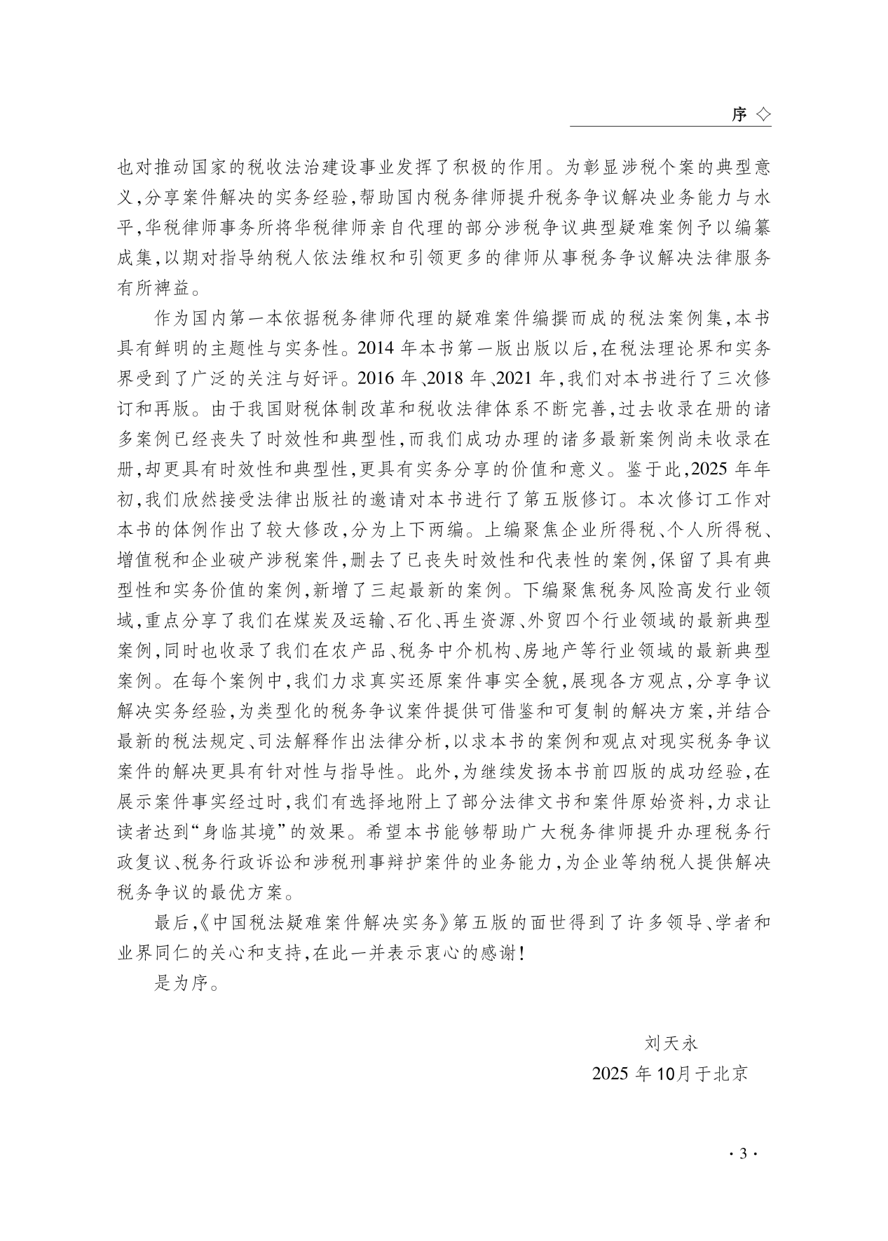 In recent years, as China’s tax legislation process has steadily advanced, reforms in the fiscal and taxation systems and tax collection and management around the development of smart taxation have deepened. The concepts of tax compliance and tax adherence have been thoroughly implemented across society, leading to significant changes in the types and industry distribution of typical tax dispute cases, as well as in tax judicial practices. In early 2025, in response to invitations from Law Press and calls from readers, Lawyer Liu Tianyong led the Hwuason team in a comprehensive revision of the book, which took nearly a year to complete, resulting in this fifth edition.
