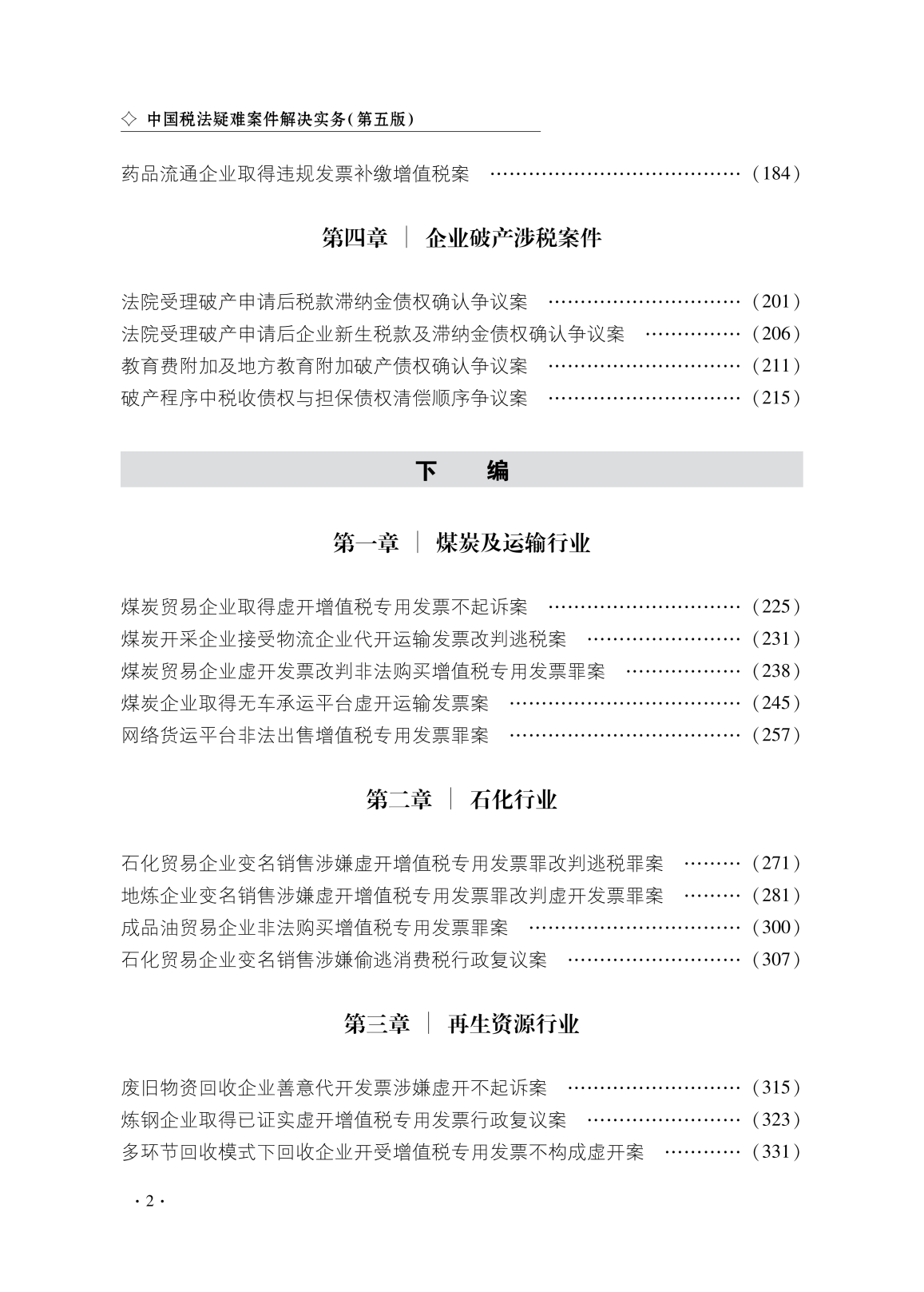 Legal Practice Of China Difficult Tax Cases (Fifth Edition) retains only a small portion of cases from the fourth edition and adds 19 new typical cases handled by the Huashui team in the past three years. These include two new Corporate Income Tax cases, two new Individual Income Tax cases, four new cases on tax issues in corporate bankruptcy, three new cases in foreign trade, two new cases in the petrochemical industry, two new cases in renewable resources and steel, two new cases in real estate, and one new case each in the coal and agricultural products industries.